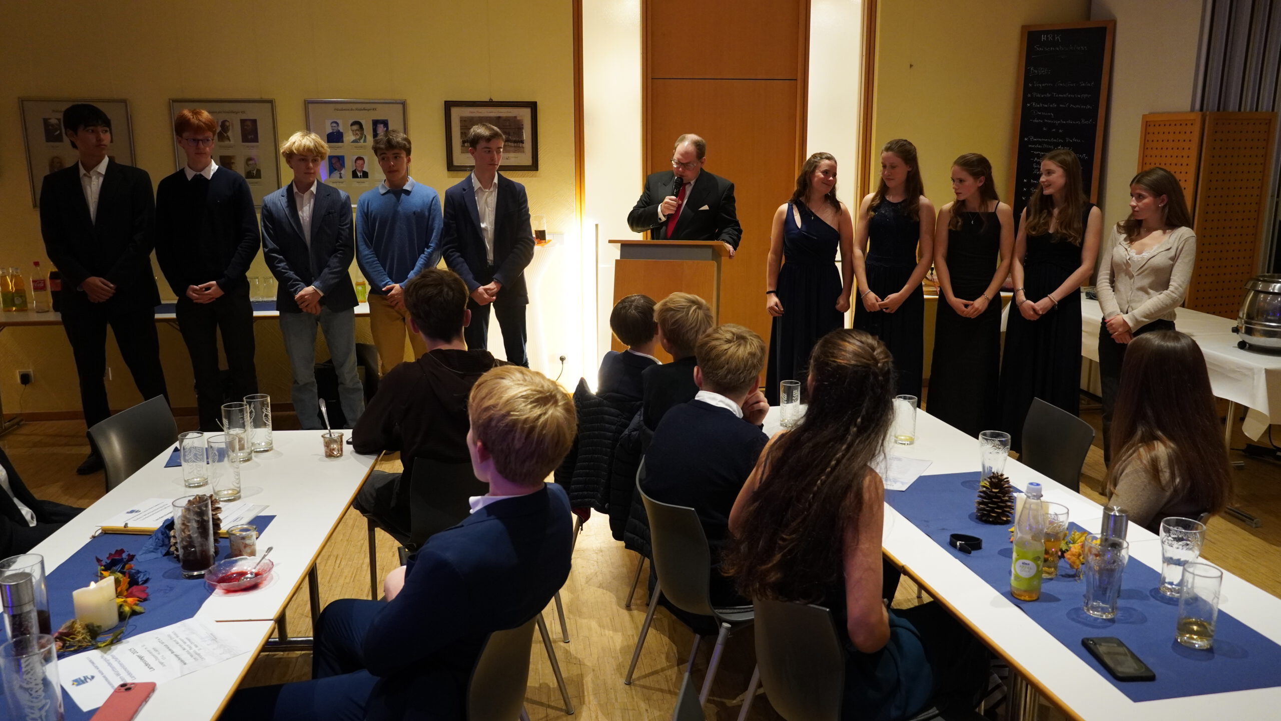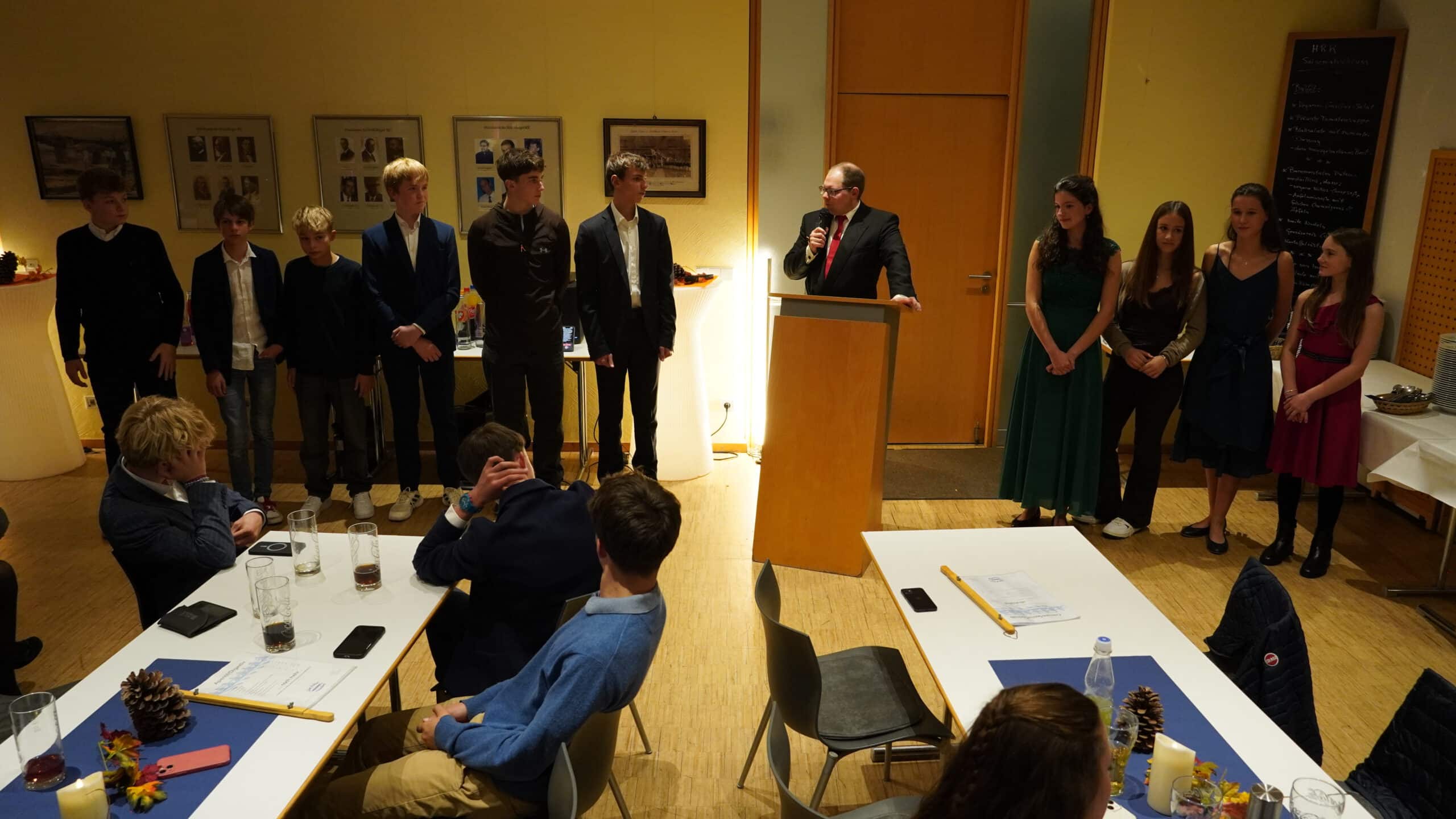 Am 15.11.2025 fand zum zweiten Mal die Saisonabschlussfeier der Ruderinnen und Ruderer i, HRL-Bootshaus zum Achter statt. Über 70 Teilnehmende, allesamt in Abendgarderobe erschienen – und dieses auf ausdrücklichen Wunsch der Jugendlichen – ließen die Saison 2025 Revue passieren. Moderiert wurde diese Veranstaltung gekonnt von unserem Präsidenten Dr. Michael Stittgen, Cheftrainer René Modrak und unserem Vizepräsidenten Verwaltung – und engagiertem Trainer der Ü18- Heinrich Drügemöller. Höhepunkt war der Auftritt unserer WM-Dritten im Frauen Doppelvierer (in Shanghai), Lisa Gutfleisch, die gleich zu Beginnen der Feierlichkeiten von Michael und René gewürdigt und interviewed wurde. Neben den vielen Sportlerinnen und Sportlern wurden auch die nimmermüden Betreuer*innen und Trainer*innen vorgestellt: Daniela Micol, Jannik Schlüter, René Müller, Nathalie Böck, Larissa und Victoria Motsch sowie Christian Schyr, einige von ihnen konnten leider nicht teilnehmen. Fürs leibliche Wohl umsorgte uns Uschi mit Team. Es war eine gelungene Veranstaltung, im nächsten Jahr wollen wir die Messlatte von 100 Teilnehmenden „knacken“. Mit einem dreifachen Hipp-Hipp-Hurra wurde diese schöne Veranstaltung dann offiziell beendet.