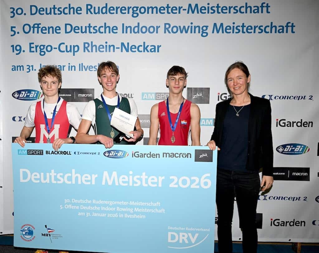 Viele kennen sie aus ihrem Fitnessstudio, Ruderergometer, mit denen man die Ruderbewegung an Land simulieren kann. Für Ruderer sind sie ein wichtiges Trainingsmittel im Winter und ein gutes Gerät zur Überprüfung des aktuellen Leistungsstandes. Deshalb gibt es im Winter deutschlandweit verschiedene Ergometerwettkämpfe der Ruderer, mit dem Höhepunkt einer Deutschen Meisterschaft. Diese wurde in diesem Jahr vom Mannheimer-Regattaverein am 31.1.2026 in Ilvesheim ausgerichtet, womit eine Teilnahme für Vereine der Rhein-Neckar Region fast schon verpflichtend war. Neben fast allen Vereinen aus dem Süden, haben sich auch Vereine aus ganz Deutschland wie zum Beispiel aus Neuss, Stralsund oder aus Kiel auf den Weg gemacht, um in Ilvesheim um die Medaillen zu kämpfen.