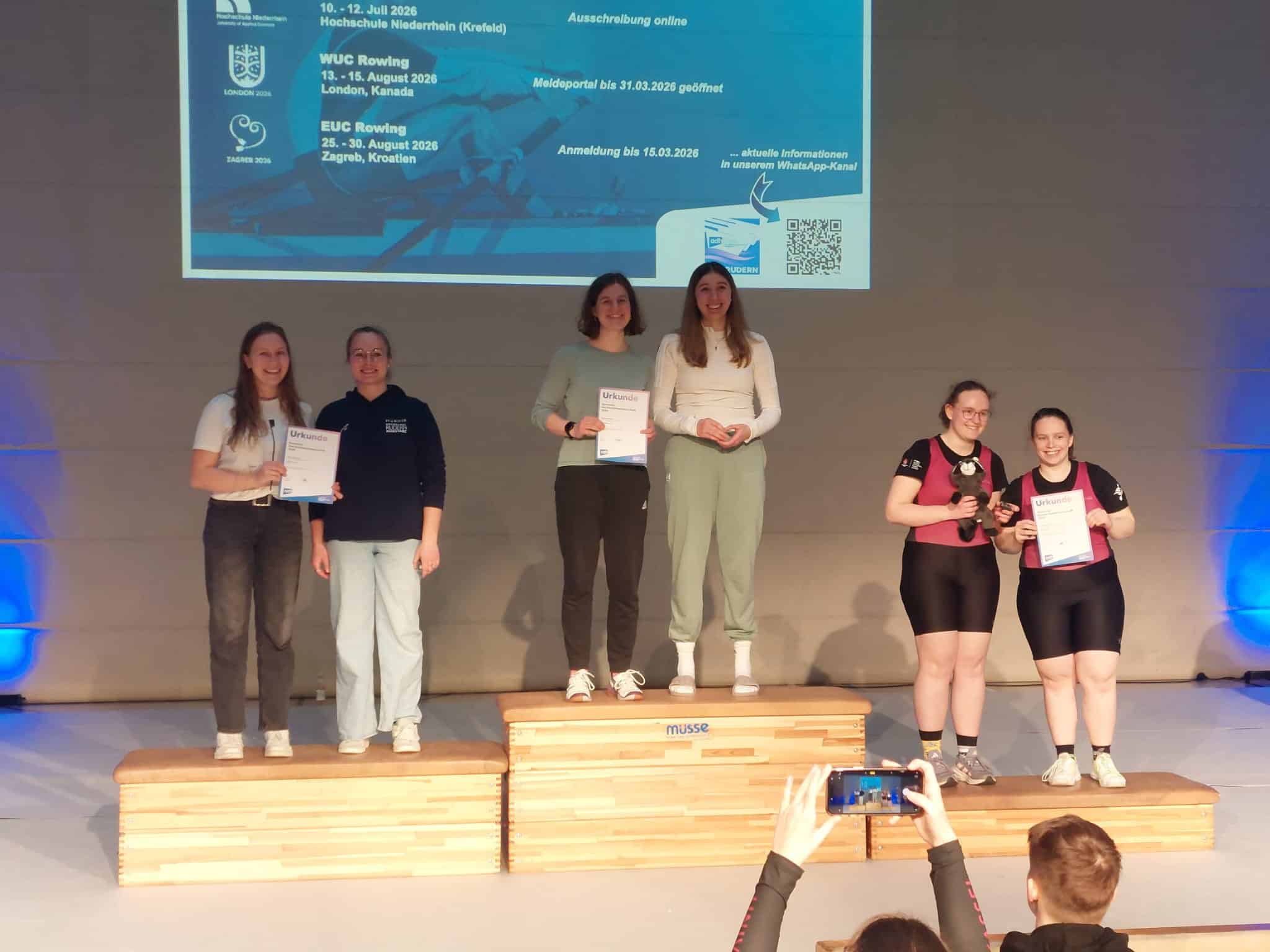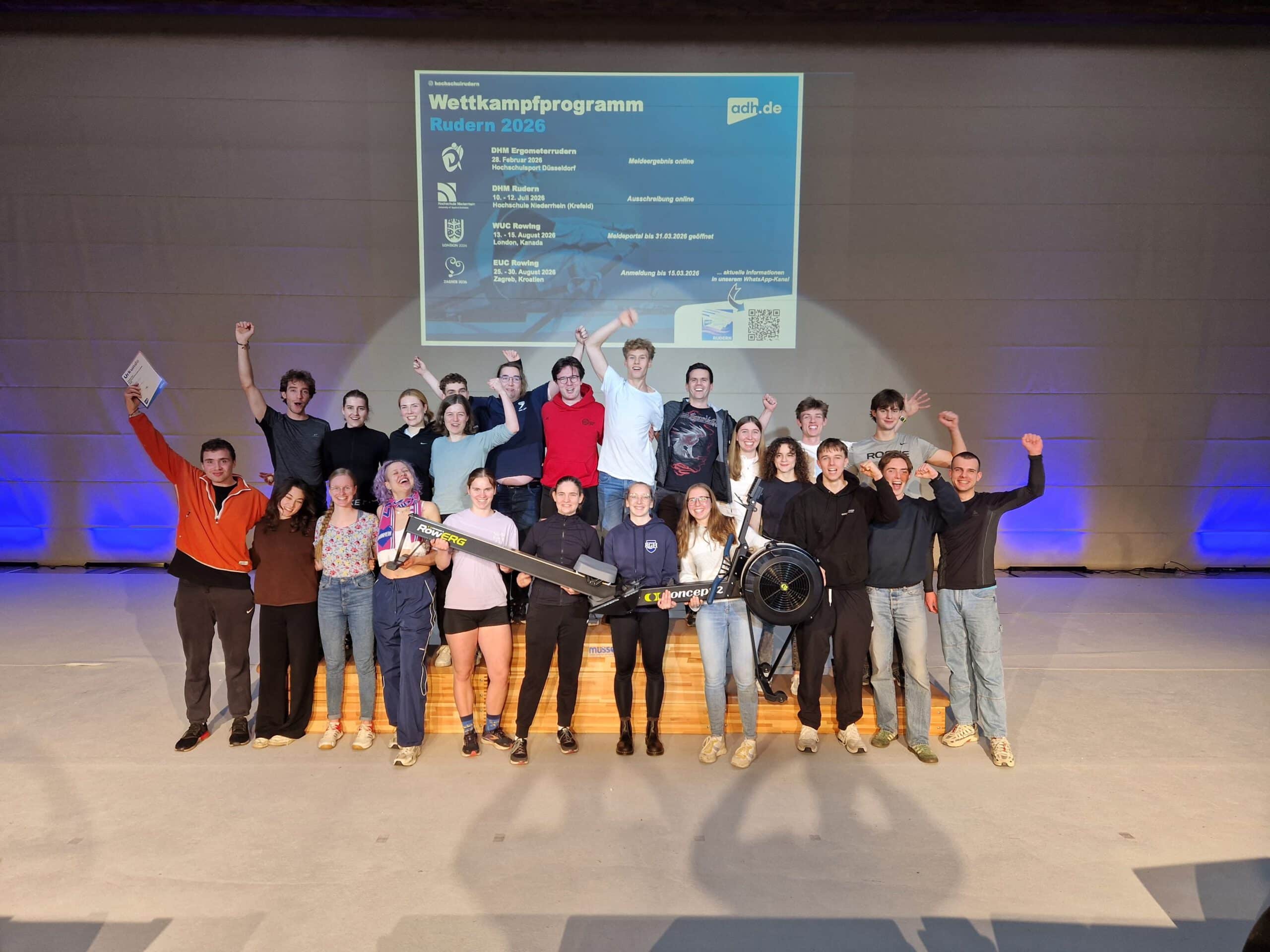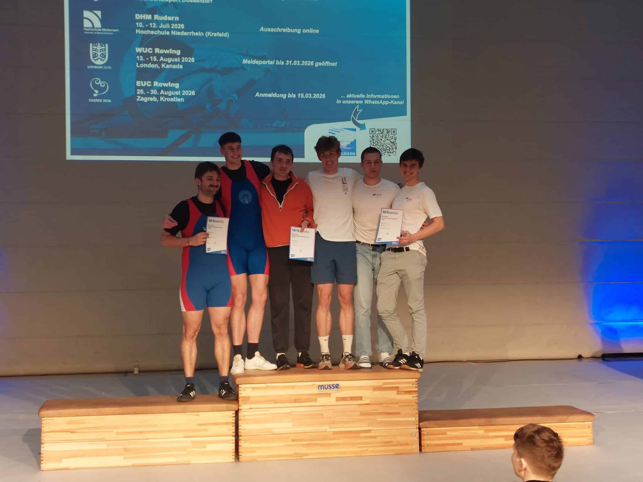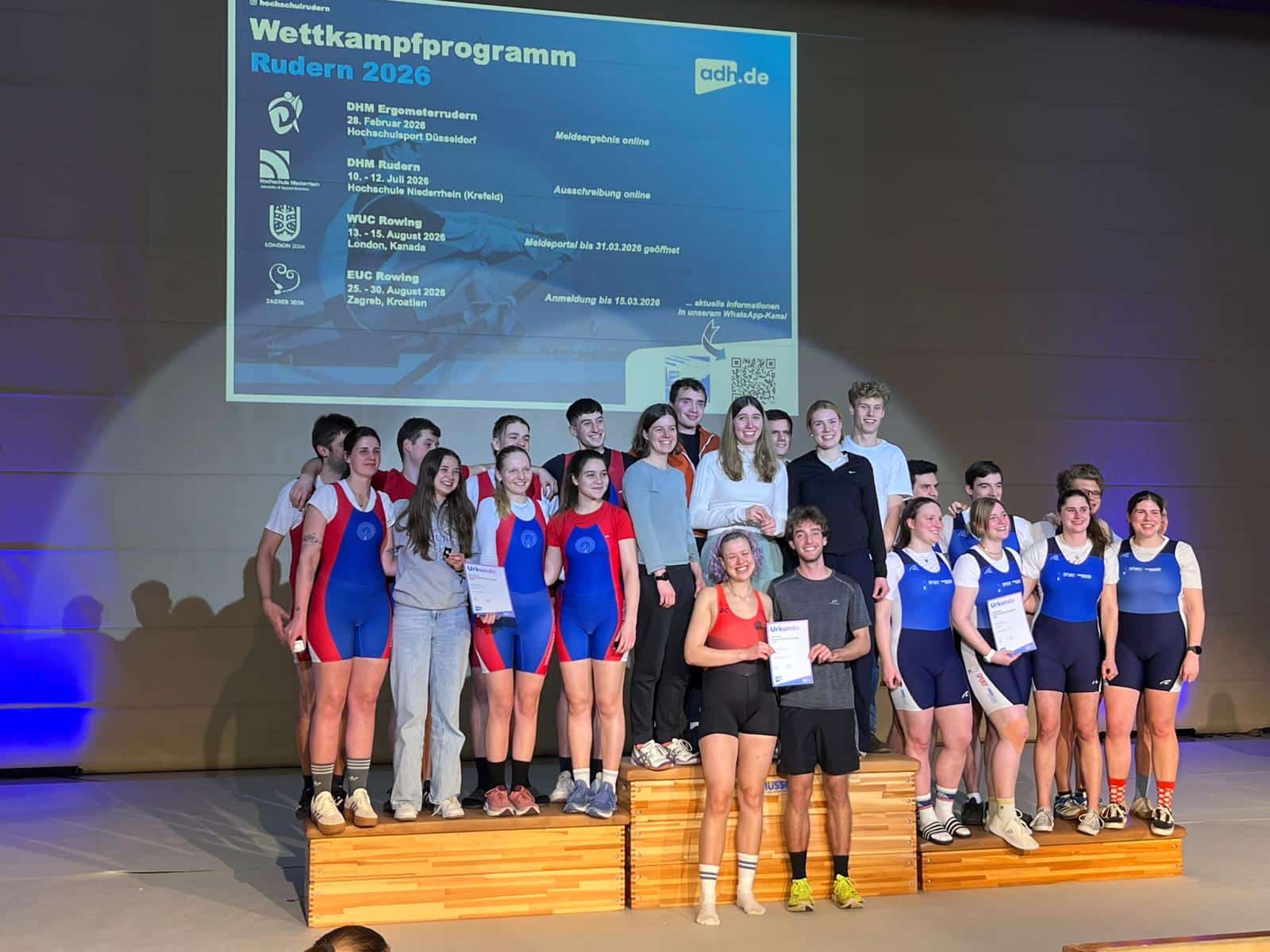Am 28.02.2026 fanden die Deutschen Hochschulmeisterschaften im Ergometerrudern in Düsseldorf statt. Nach einer schwierigen Parkplatzsuche am Vorabend war der Großteil der Mannschaft bereits in Düsseldorf angekommen, am Samstagmorgen trafen kurz vor der Eröffnungsveranstaltung auch noch die restlichen Sportler ein.